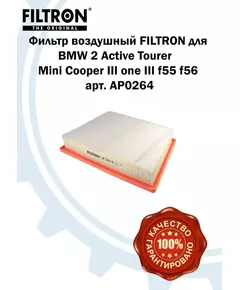 Фильтр воздушный FILTRON для BMW 2 active tourer f45 x1 f48 mini cooper III one III f55 f56 арт. AP0264