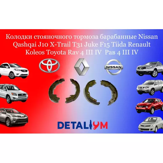 Колодки стояночного тормоза барабанные Nissan Qashqai J10 X-Trail T31 Juke F15 Tiida Renault Koleos Toyota Rav 4 III IV / Ниссан Кашкай Ж10 Х-Трейл Т31 Жук Ф15 Тиида Рено Колеос Тойота Рав 4 III IV