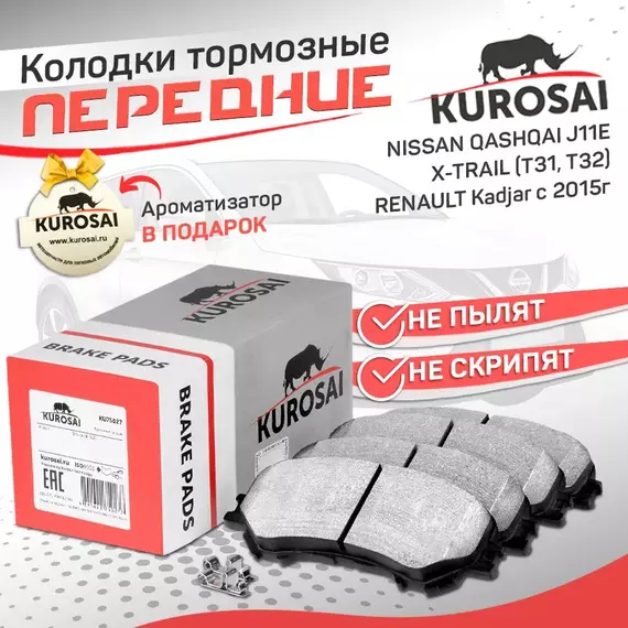 Колодки тормозные передние KU75027 NISSAN QASHQAI J11 с 2013 года, X-TRAIL (T31, T32), RENAULT Kadjar с 2015г.