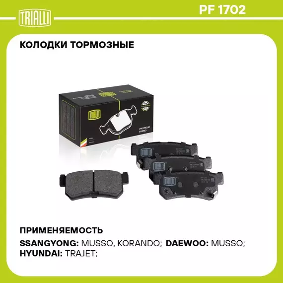 Колодки тормозные для автомобилей SsangYong Actyon (05 ) / Kyron (05 ) дисковые задние TRIALLI PF 1702