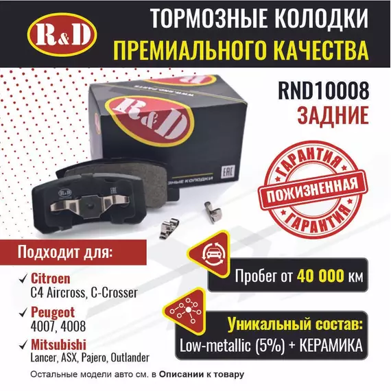 Тормозные колодки R&D передние RND10056 Тормозные колодки R&D LARGUS/Лада Ларгус, RENAULT LOGAN/Рено Логан, SANDERO/Сандеро, CLIO/Клио I,II