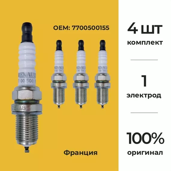 Оригинальные свечи зажигания 4 шт. для Renault Logan, Sandero, Duster 1.6 K4M , Duster, Kaptur 2.0 F4R , Largus 1.6 K4M OEM: 7700500155